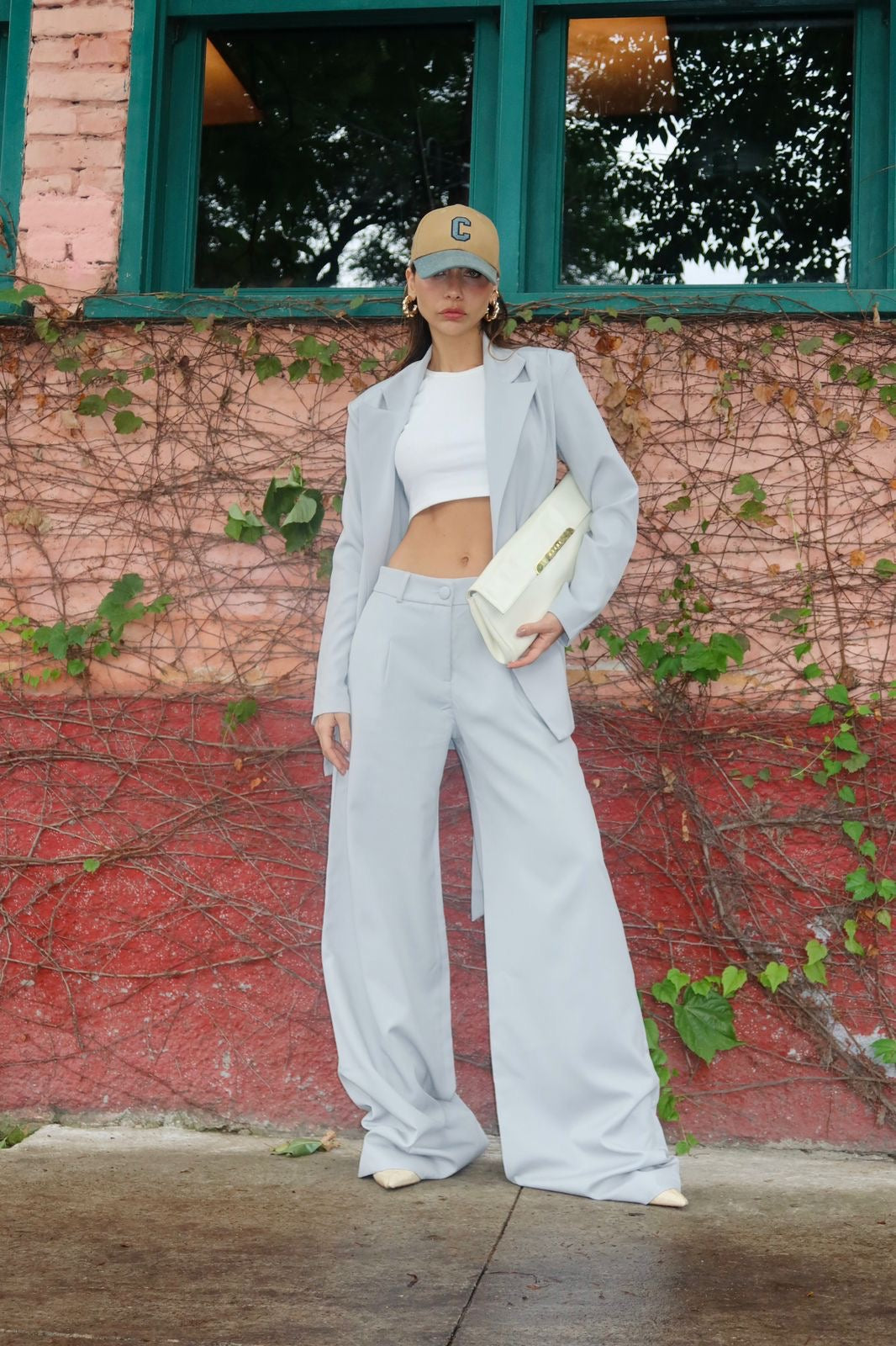 O conjunto de blazer e calça alfaiataria Disoinivel nas cores cinza e preto é uma escolha sofisticada para quem busca elegância e estilo. O blazer apresenta um corte impecável, com lapelas estruturadas que conferem um toque clássico, enquanto a calça super versátil! A calça possui cintura mais alta e uma modelagem perfeita valorizando o corpo feminino